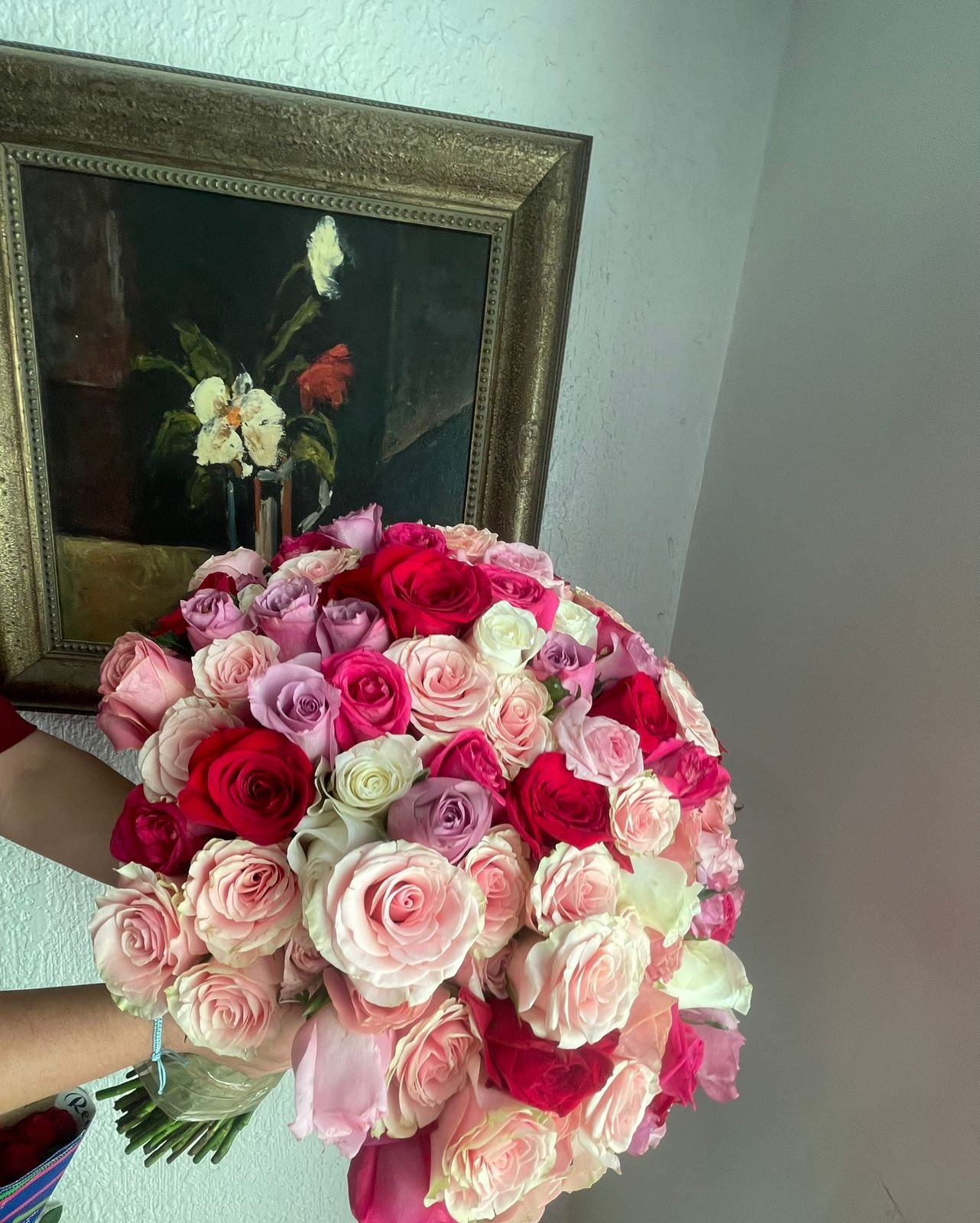 El ramo “princesa” es una espectacular selección de 100 rosas, cuidadosamente elegidas para ofrecer una mezcla armoniosa de colores vivos y suaves: desde rosa fuerte, rosa claro, hasta las clásicas rosas rojas. Este ramo es ideal para marcar una ocasión especial y expresar tus sentimientos de la manera más elegante y romántica posible.
